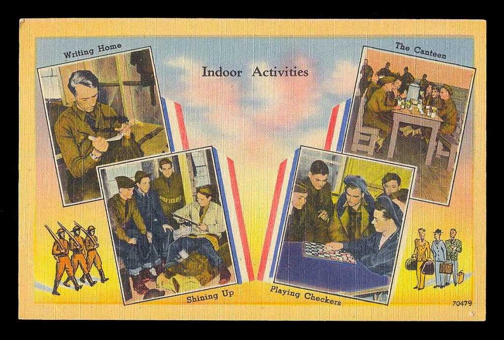 I DON’T KNOW HOW IT WENT WITH YOU, BUT IN THE 1950’s THE FIRST THING YOU HAD TO DO WHEN YOU GOT TO BASIC TRAINING WAS MAIL A CARD TO YOUR PARENTS TELLING THEM YOU ARRIVED SAFELY. BELOW ARE A FEW OF THE OLD ARMY POST CARDS I FOUND ON THE INTERNET.